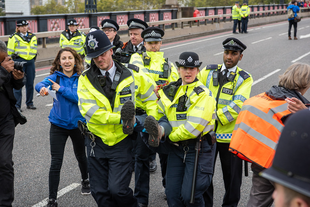 "Blocking of Lambeth Bridge by Extinction Rebellion, London" by Stefan Müller (climate) is licensed under CC BY 2.0