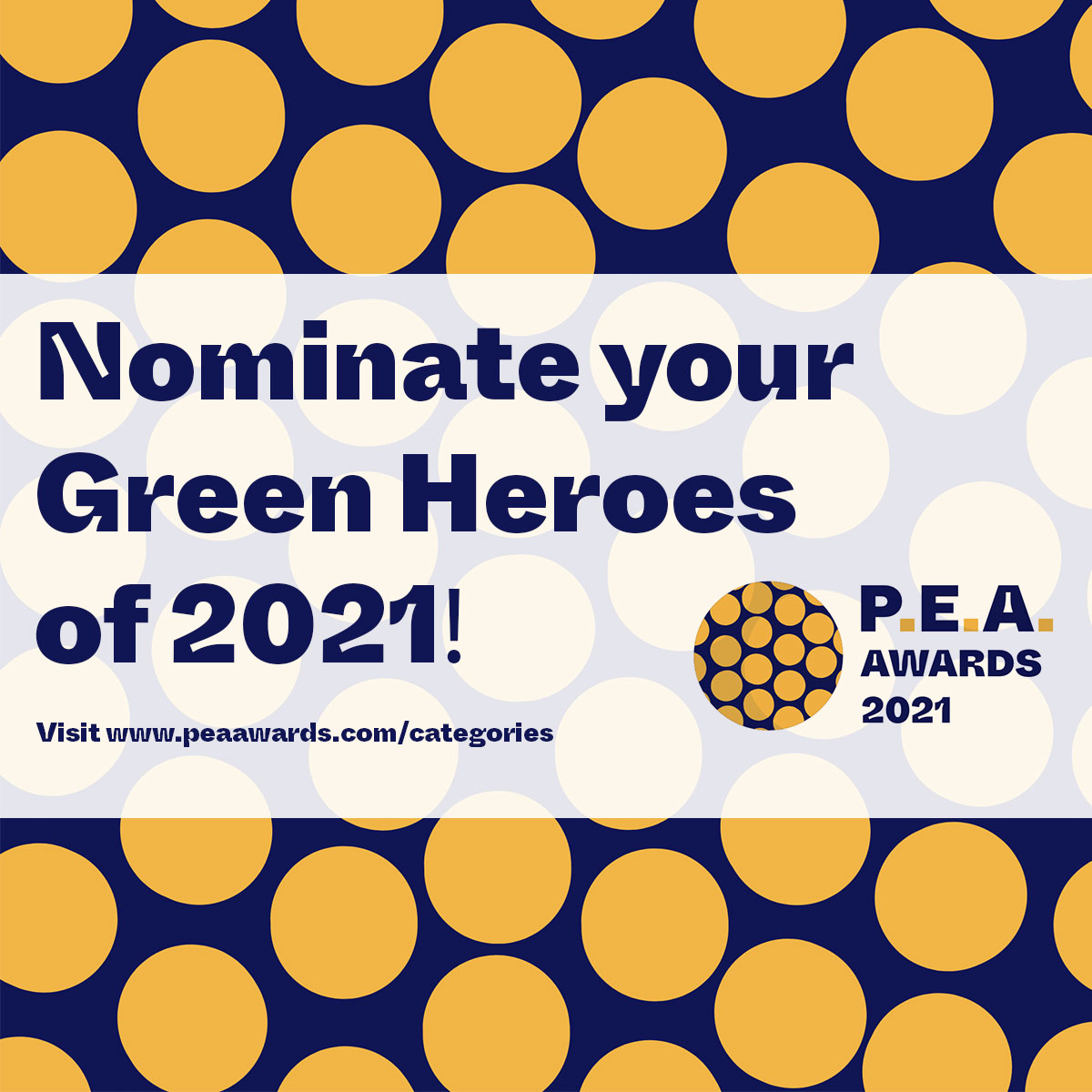 Nominations are now open for the British public to choose their Green Heroes of 2021 for the 11th P.E.A Awards, the UK’s longest-standing environmental awards show.