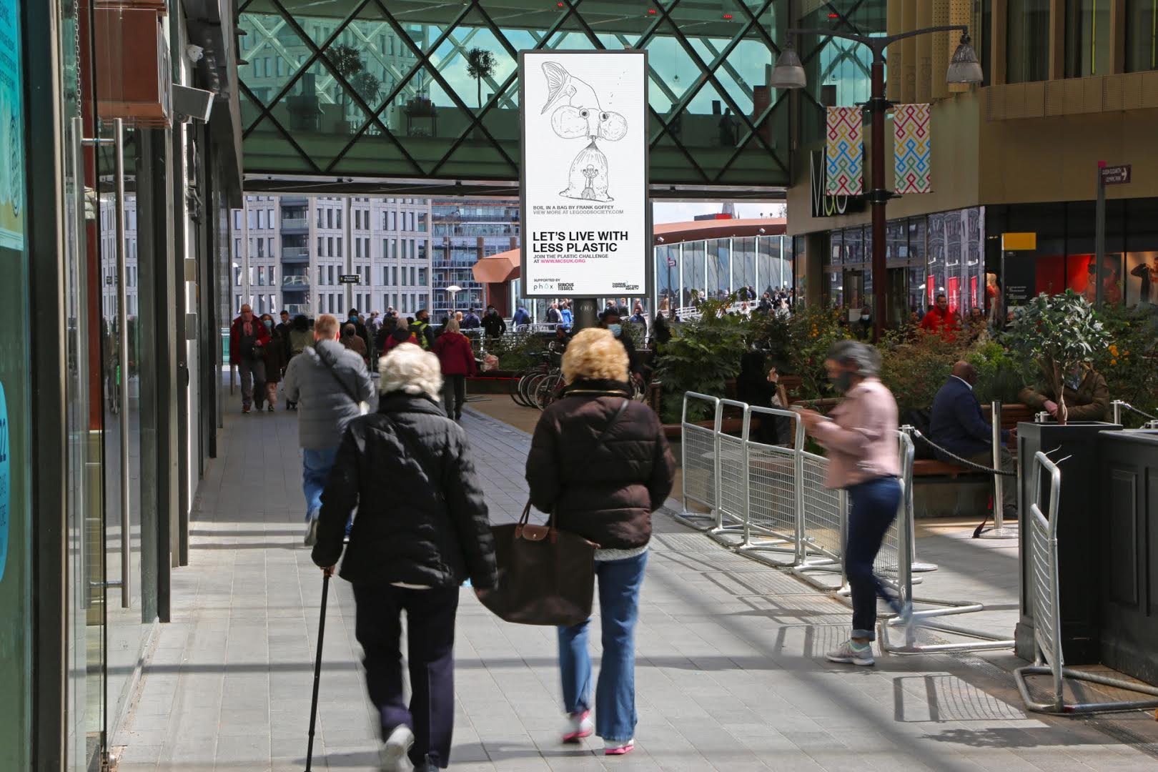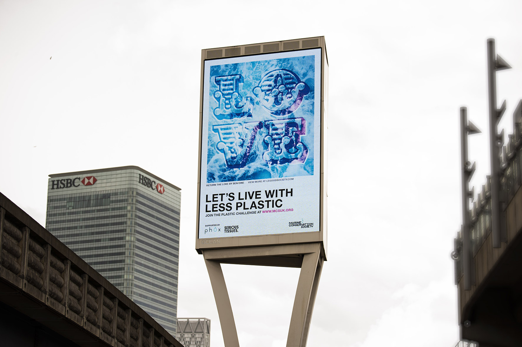 The work is being displayed nationwide on Ocean Outdoor’s large format digital Out of home (DOOH) screens in London, Birmingham, Manchester, Glasgow and Edinburgh from 5th-31st July for #plasticfreejuly and online at www.legoodsociety.com