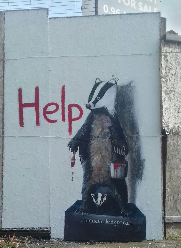 Mural by street artist Preg highlighting the controversy surrounding badger cull in the UK