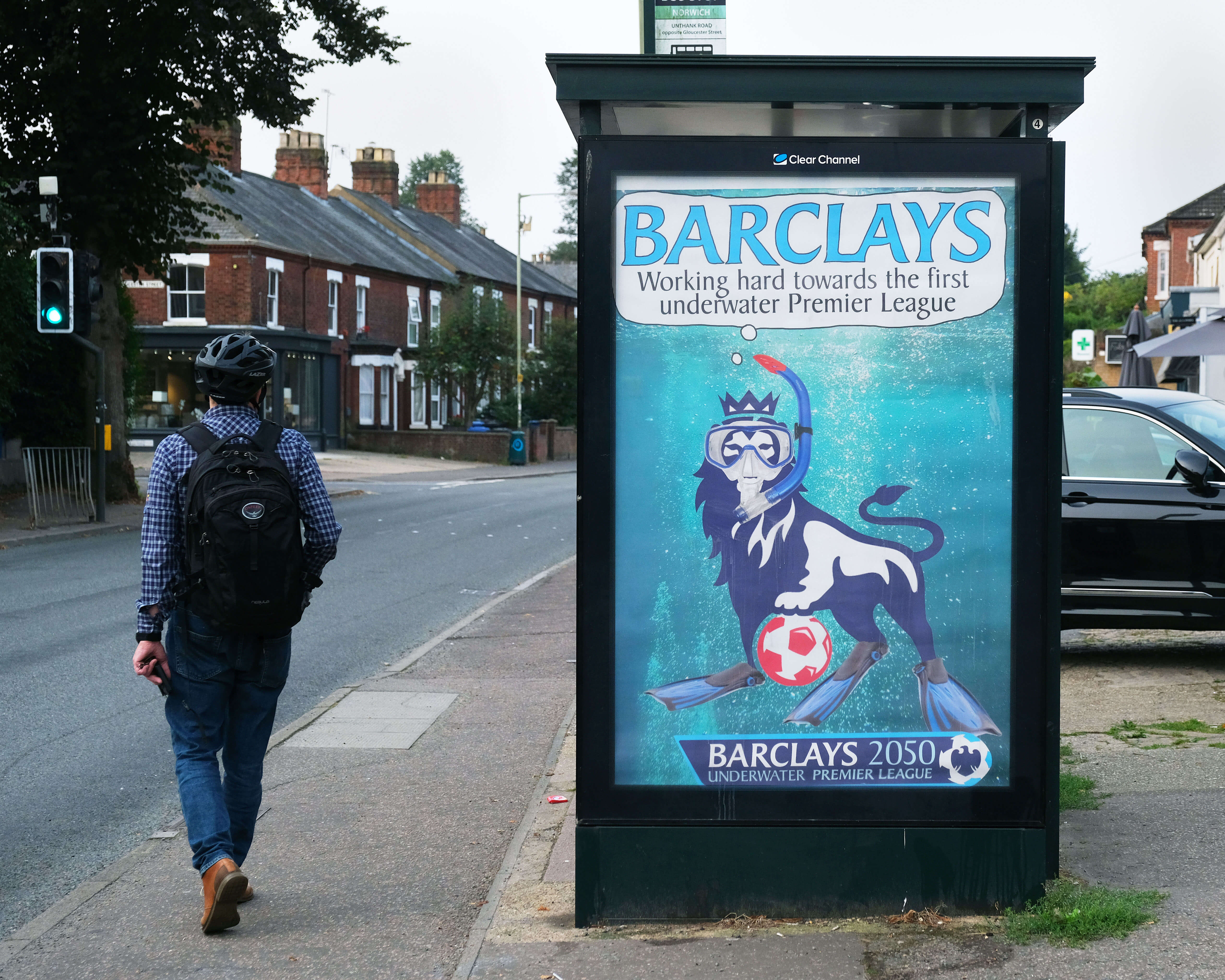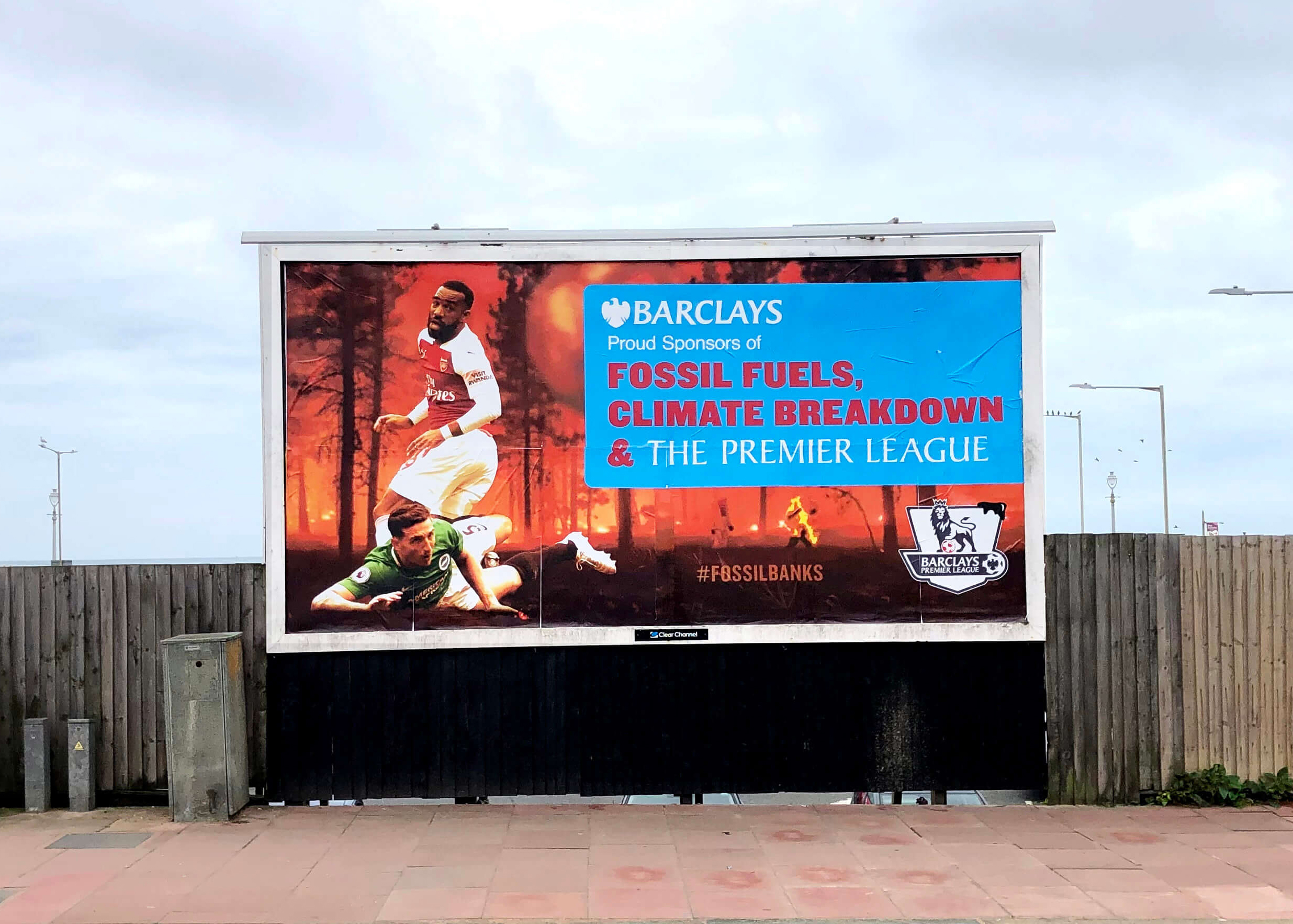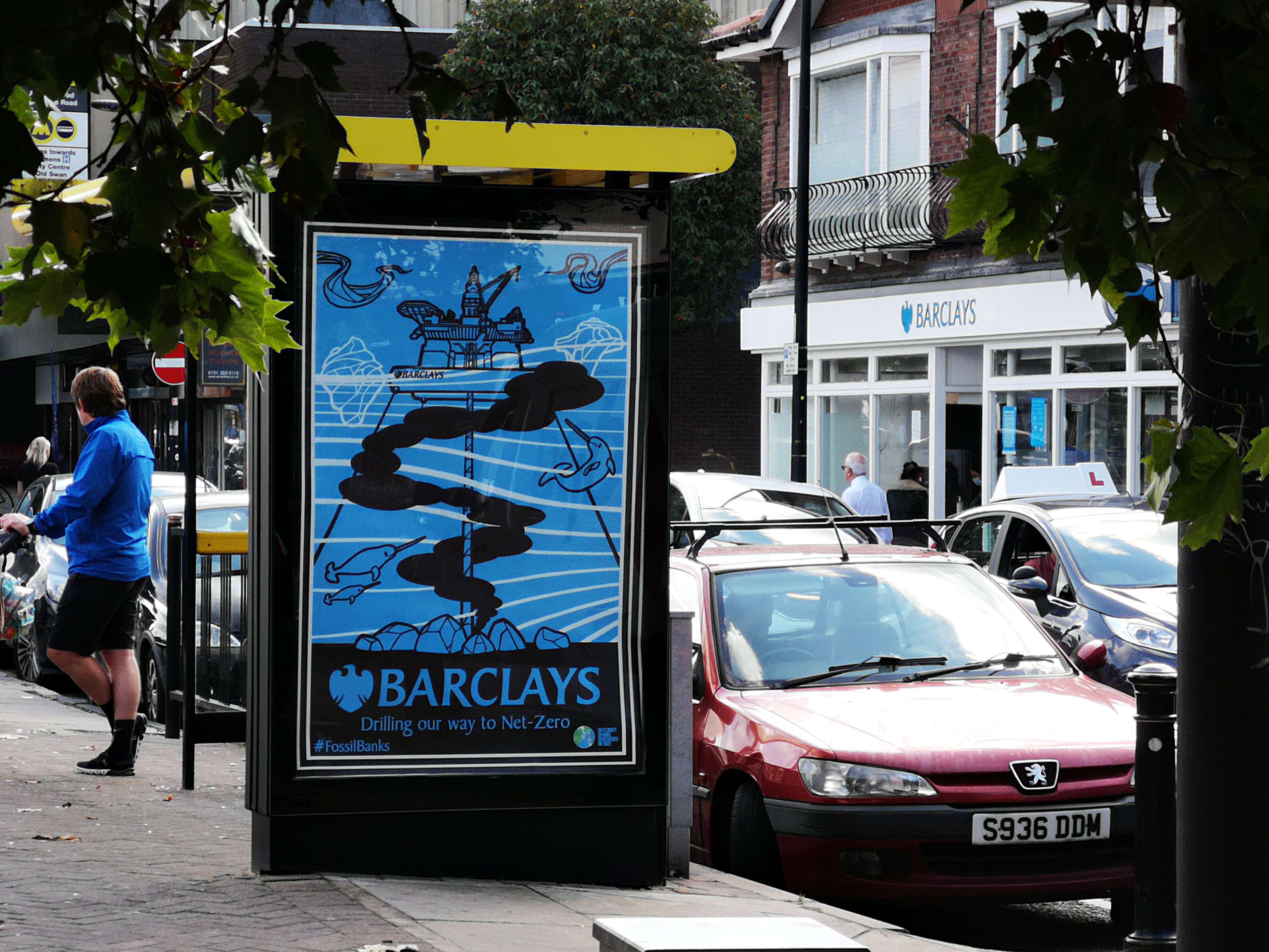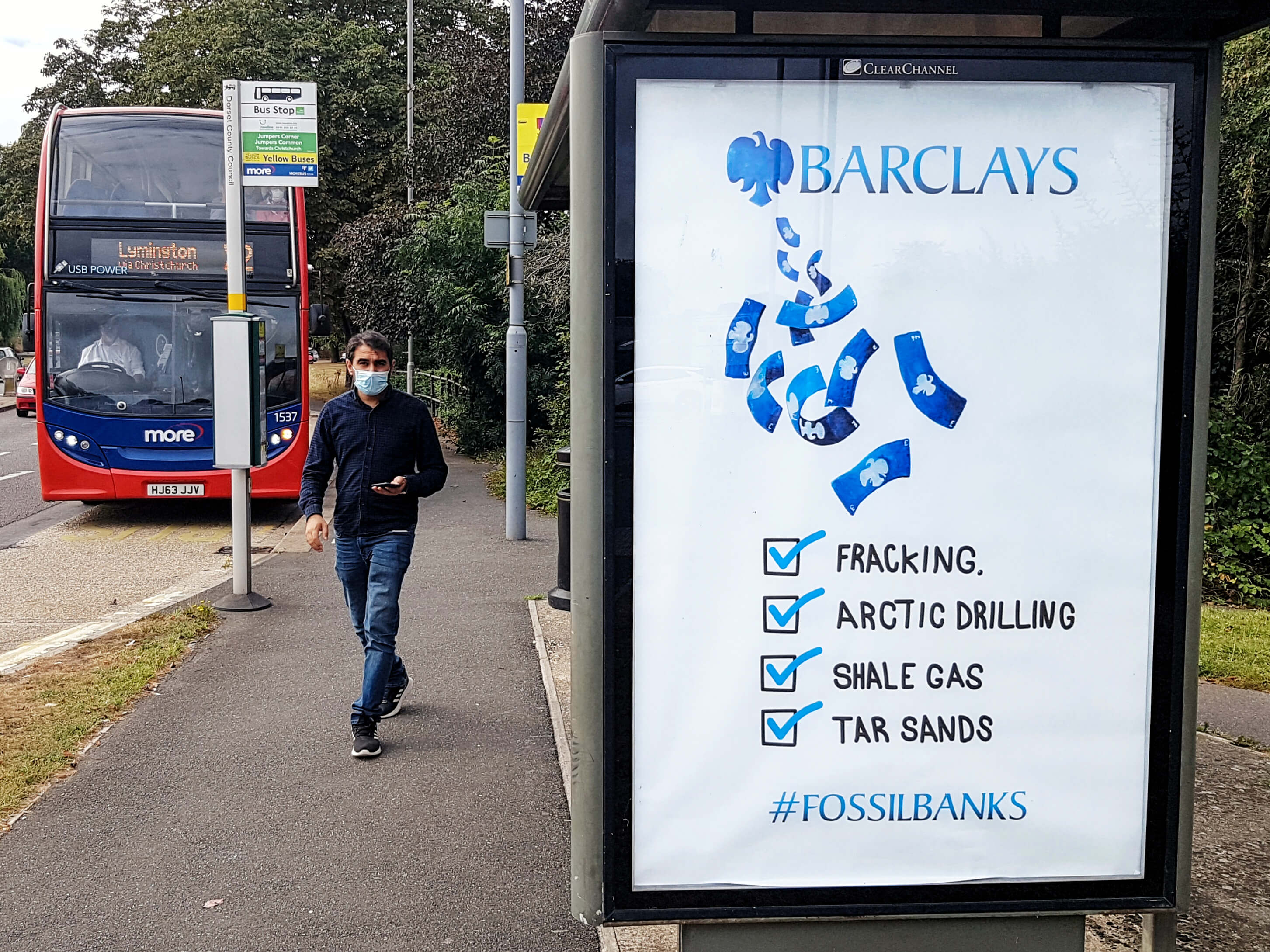 More than 200 billboards and bus stop spaces in 20 towns and cities have had satirical artworks installed without permission, as calls grow for the bank to stop offering credit to fossil fuel companies flouting climate pledges. Barclays is currently considering updating its policy on fossil fuel lending ahead of the COP26 climate summit in Glasgow this November.