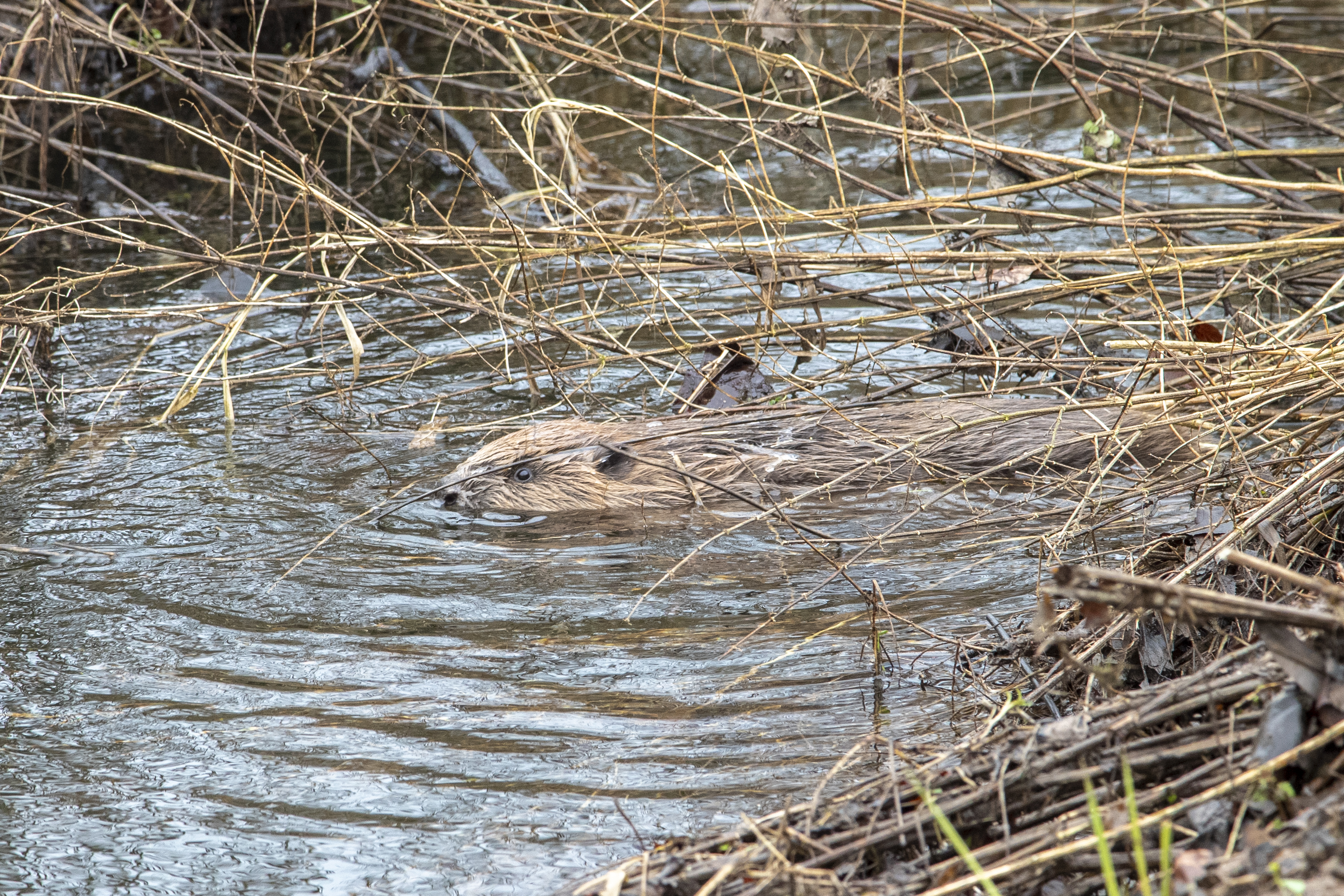 On the day, the beavers were released with just ten people present at the release to minimise any possible stress to the beavers. The kits’ crates were opened first, and they seemed initially reluctant to leave the warmth of the straw inside, before tentatively emerging. Each then seemed to have a different and individual reaction – two returned to the crates for a time while three entered the burn with the adult male. The female’s crate was opened last. She immediately entered the water with a big tail slap and then the whole family were away to explore their new home on the floodplain of the River Endrick.