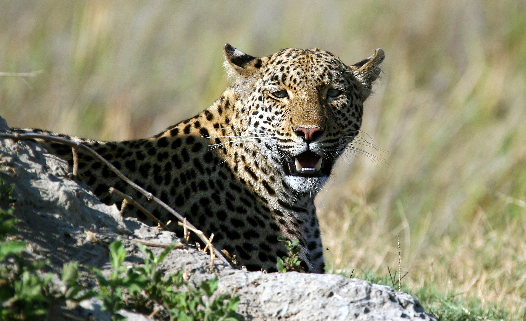 A female leopard rests on a termite hill in the Kwedi concession in the Okavango Delta, (Photo: EPA / Gernot Hensel)