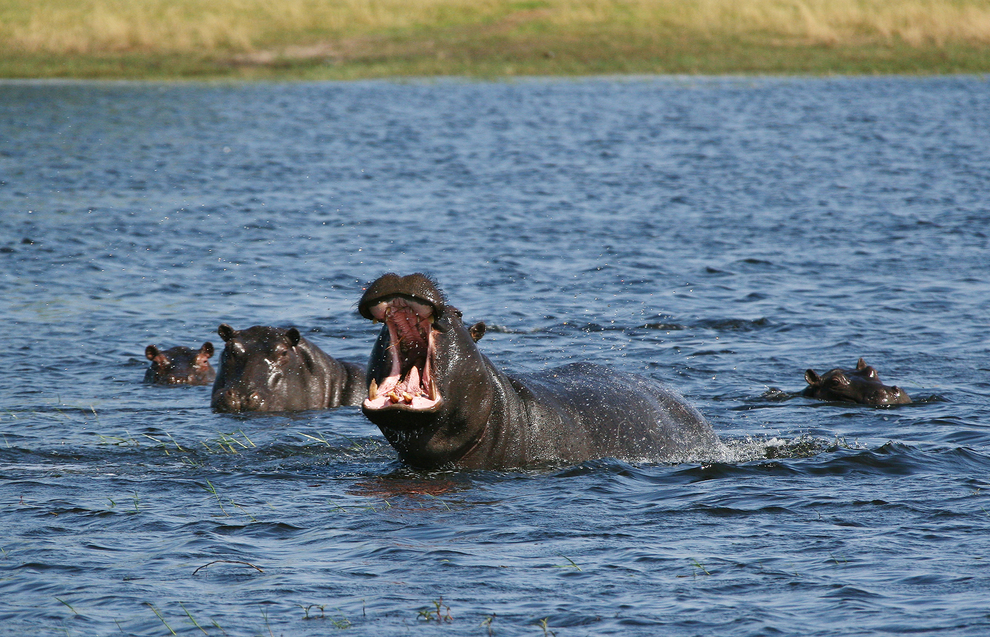 A hippo bull roars in the Kwedi concession in the Okavango Delta. (Photo: EPA / Gernot Hensel)