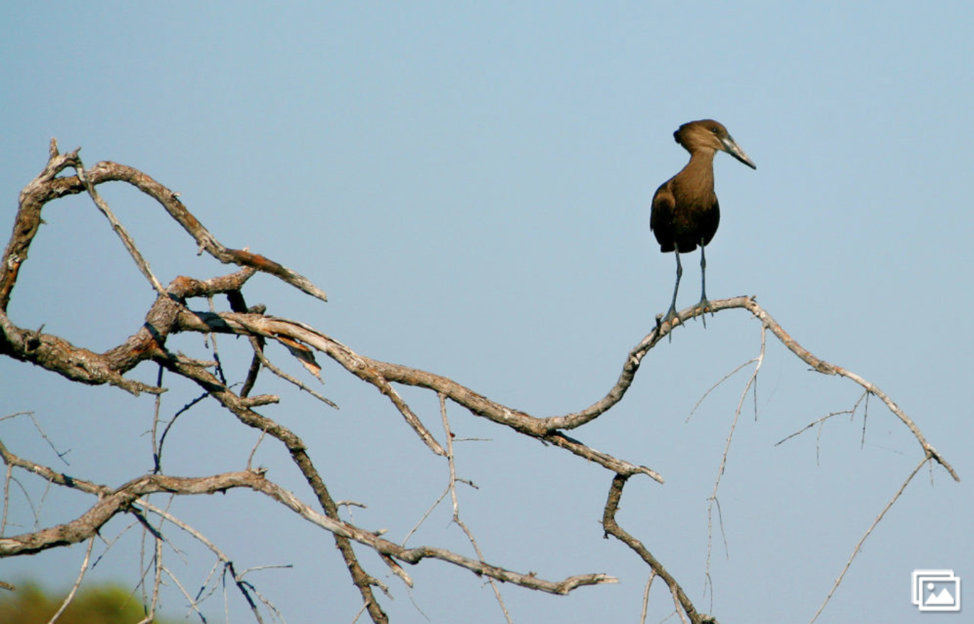 A hamerkop rests on the branch of a tree in the Kwedi concession in the Okavango Delta. (Photo: EPA / Gernot Hensel)