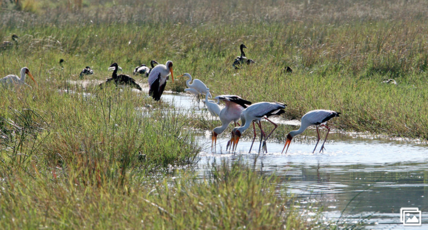 Support independent eco journalism that drives real change.A group of yellow-billed storks and other birds feed on small fishes in the flooded grassland in the Kwedi concession of the Okavango Delta, about 30km north of Mombo, Botswana. (Photo: EPA / Gernot Hensel)