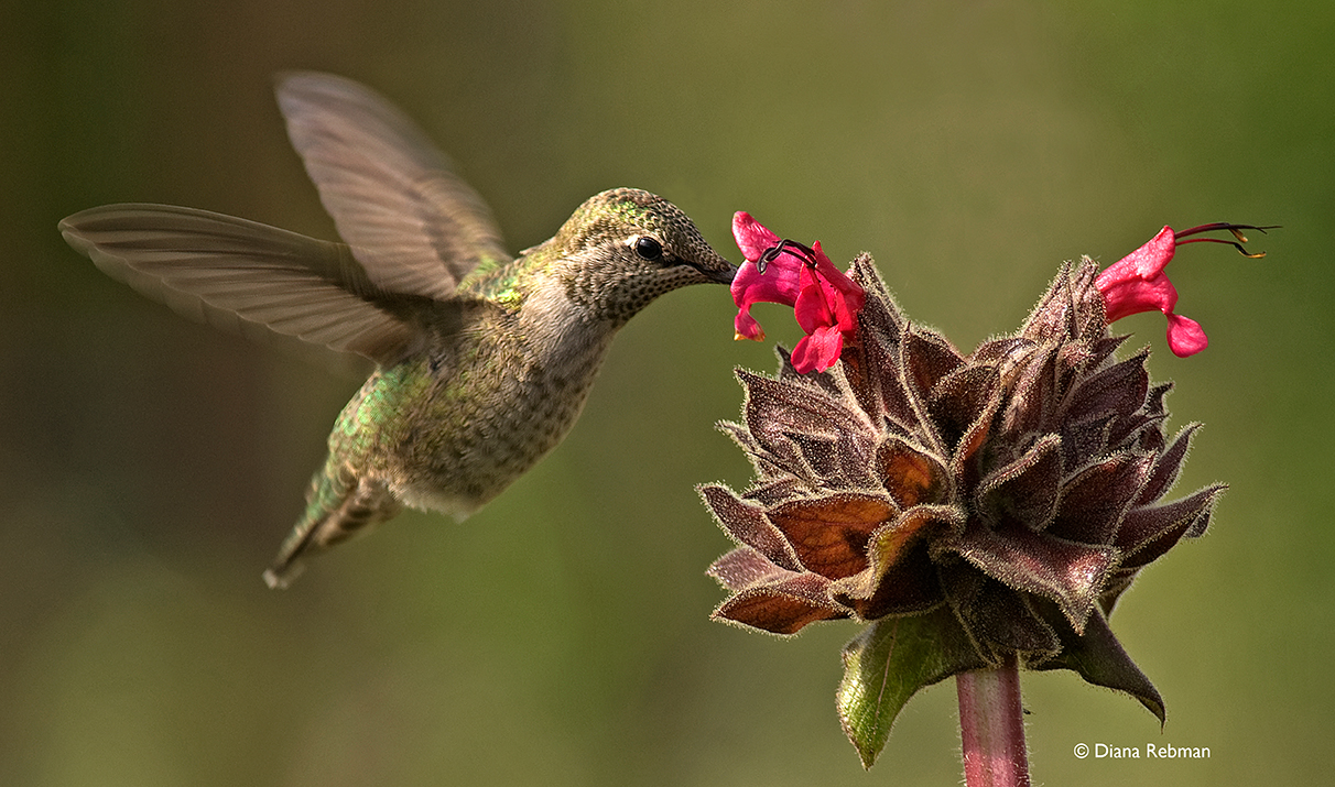 Anna’s Hummingbird feeding. Credit Diana Rebman