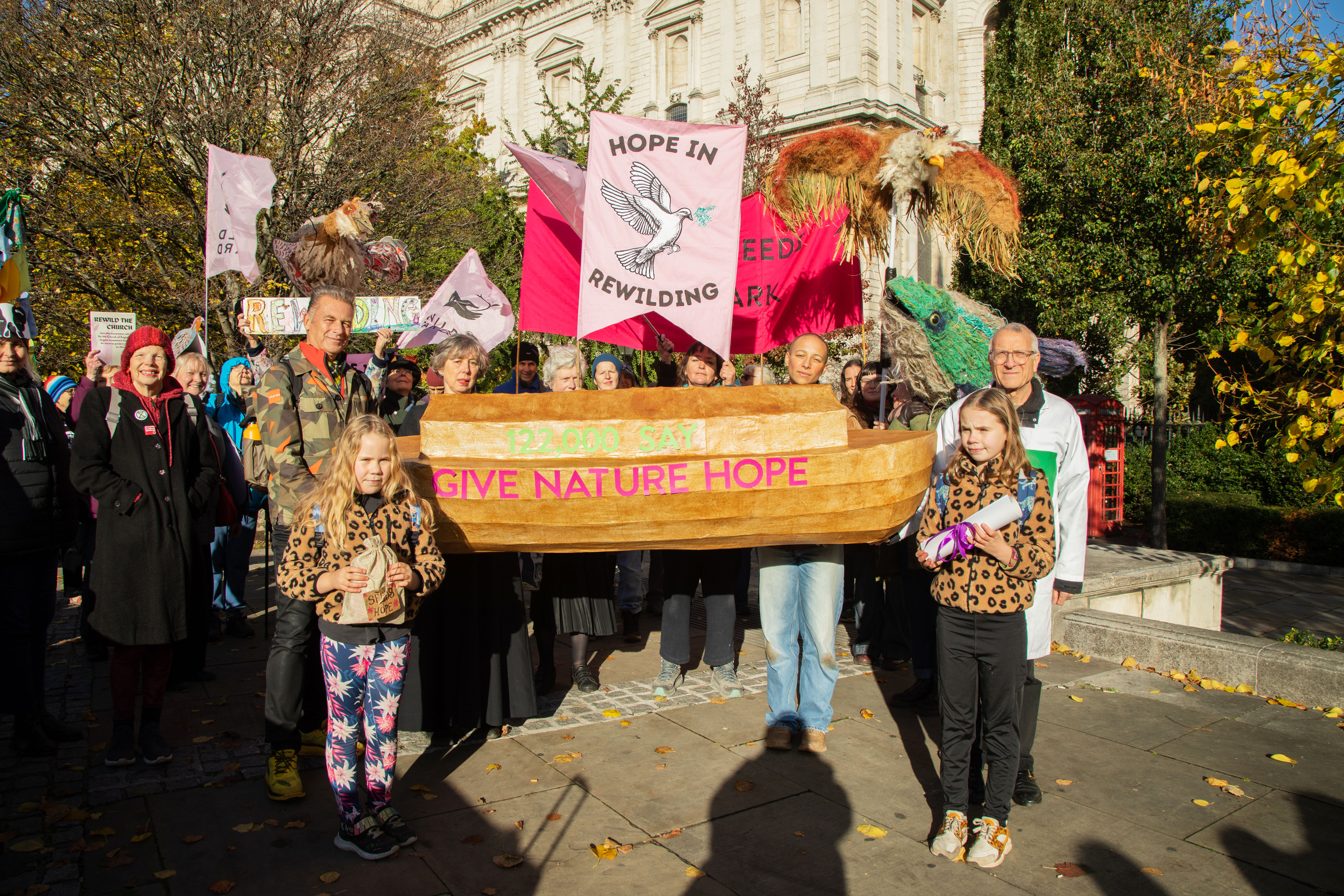 This morning, Chris Packham carried this groundswell of support to St. Paul’s Cathedral. On the steps of the iconic building, the conservationist and TV presenter held aloft a model of Noah’s Ark etched with the names of the thousands of members of the public who want the Church of England’s wealthy investment body, the Church Commissioners, to take urgent action to protect nature.