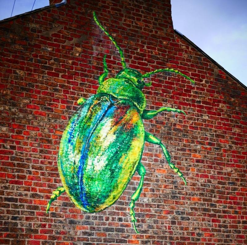 And then, merging outside and in, wildlife and urban environment, there’s the brilliant new eco art mural to visit. The ‘Jewel of York’ celebrates the recovery of the iridescent tansy beetle; these precious bugs were facing extinction in the UK, clinging on to the swollen banks of the river Ouse until local conservationists intervened and their numbers rose. The mural joins other large-scale paintings of endangered animals by amazing street artist ATM , instantly creating a new landmark for York. It’s one which writer and New Networks curator Dr Amy-Jane Beer sees as ‘a timely reminder that nature has a rightful place in our city.’