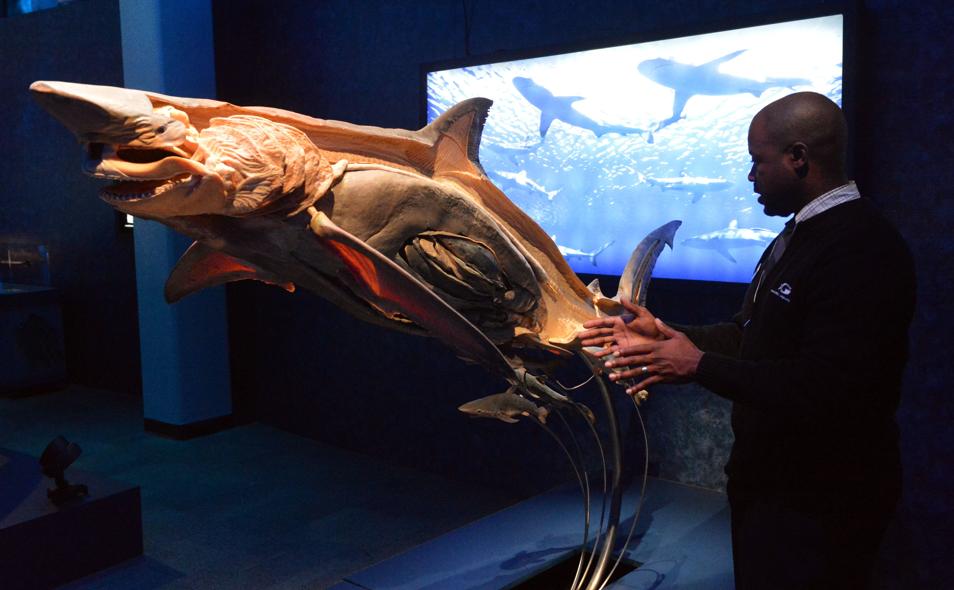 A GROUNDBREAKING new exhibition allows visitors to explore the secrets of life beneath the ocean’s waves by viewing incredible cross-sections of the animals including whales, penguins and Great White sharks, and even getting an up-close glimpse of their complex organs. SEA CREATURES opens at the Royal Horticultural Halls, Lawrence Hall in London between July 20 and August 30, before touring the UK, stopping in Edinburgh, Harrogate, and Belfast, and will see fifty ethically sourced, real-life specimens of creatures including a Baleen Whale, Whale Shark, Great White Shark, Dolphin, Seal, Octopus, Penguin and Sting Ray on display, allowing visitors to glimpse inside the majestic beasts, learning about the complex life systems within and why we need to protect precious ocean life. The painstakingly preserved displays use the same plastination process developed by Dr. Gunther von Hagens and made famous by artist Damien Hirst, replacing fluids and soluble fats with resins and allowing us to view incredibly accurate ‘cross-sections’ of the creatures.  Alongside the many full-body exhibits will be a host of smaller displays, including the lung and eyeball of a Mink Whale, a whale’s kidney, the egg of a King Penguin, a Sea Lion’s heart and shark’s teeth. In total, over 200 exhibits will be on show. The educational exhibition will also feature digital interactive experiences, allowing children to immerse themselves in an underwater world. Sea Creatures visitors will be able to explore the exhibition using a special augmented reality app, which provides fascinating facts, figures and videos when they point their smart phones at the exhibits. There will also be giant, interactive mirrors that transport visitors beneath the ocean and take photos of their aquatic adventures, which can then be uploaded to social media. For younger guests, a ball pit game teaches them about the perils of plastic in our oceans. A digital screen around the pit shows colourful sharks and fish. But when a plastic bottle pops up on the screen, little ones are encouraged to throw the balls at it to save our marine life.