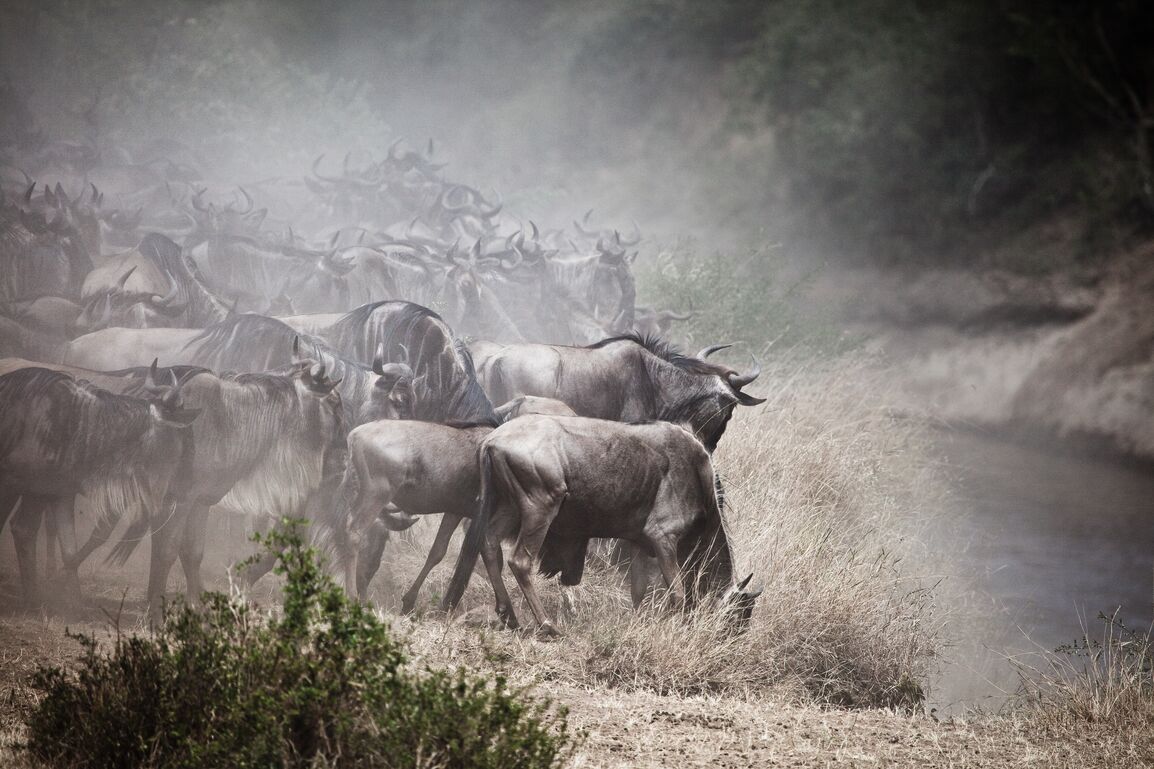 Wildebeest migration in the Maasai Mara. The recovery of Wildebeest numbers has helped turn the Serengeti ecosystem from a carbon source into a carbon sink (Photo by Robin Moore/Re:wild)