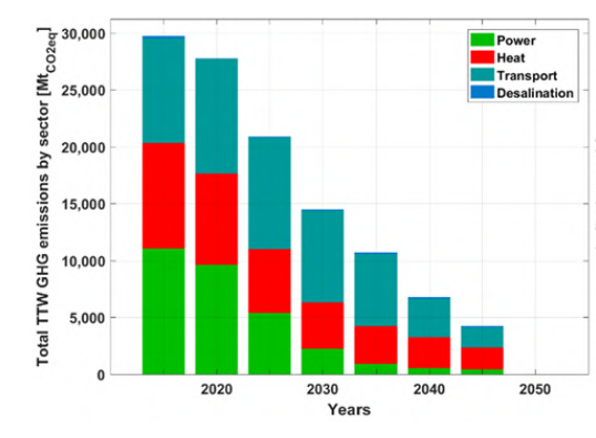 Energy-related greenhouse gas (GHG) emissions account for more than 60% of total global GHG emissions in 2015. In contrast to popular claims, a deep decarbonisation of the power and heat sectors is possible by 2030. The transport sector will lag behind, with a big decline of greenhouse gas emissions from 2030 to 2050. Annual global GHG emissions in the energy sector decline steadily through the transition from approximately 30 GtCO2eq in 2015 to zero by 2050.