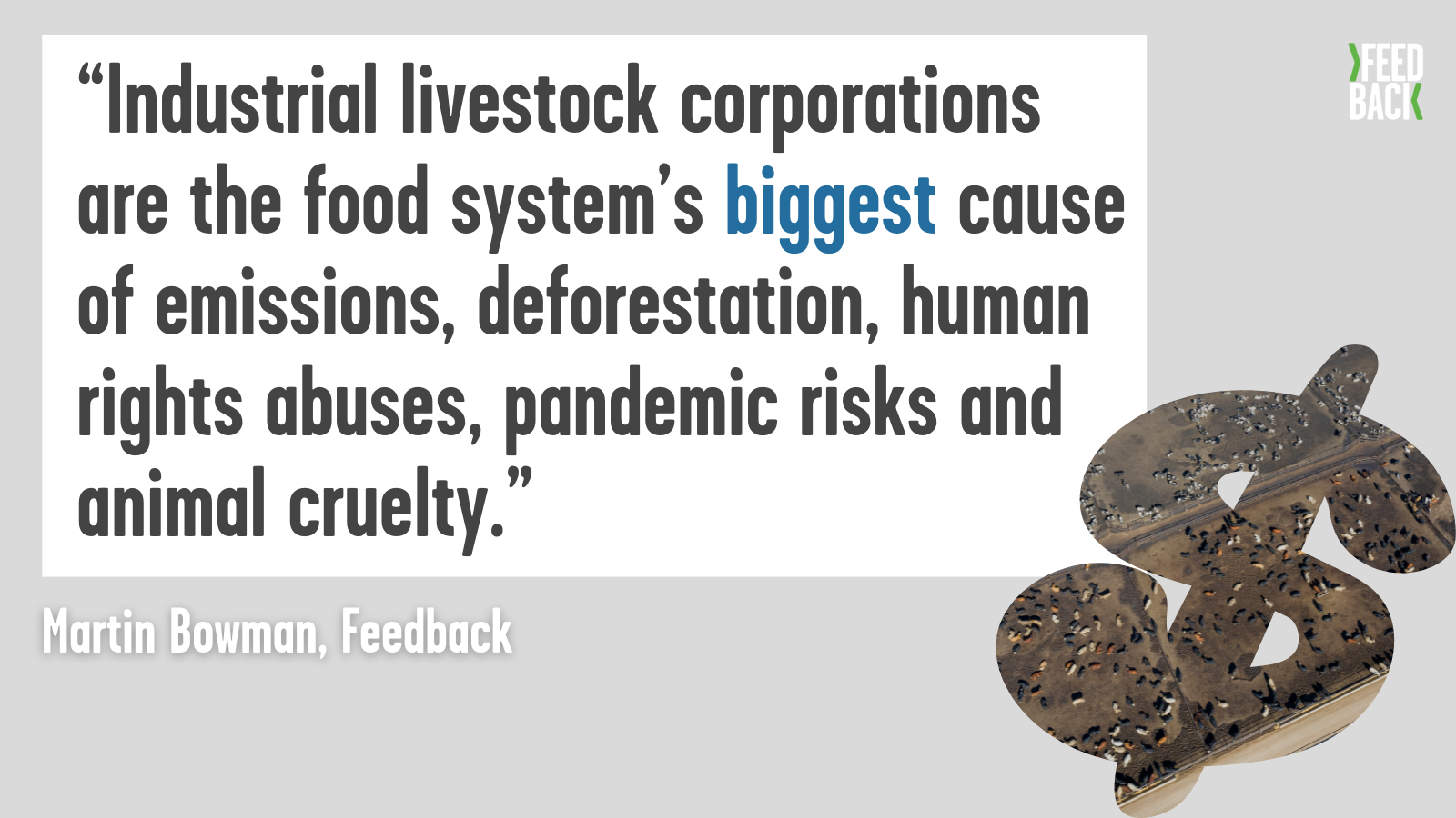 A new report released today by Feedback, ‘ Bankrolling the Butchers ’, reveals the scale of six UK banks’ financing of big livestock corporations – the world’s largest mass-producers and/or processors of meat, dairy and eggs at an unsustainable industrial scale.