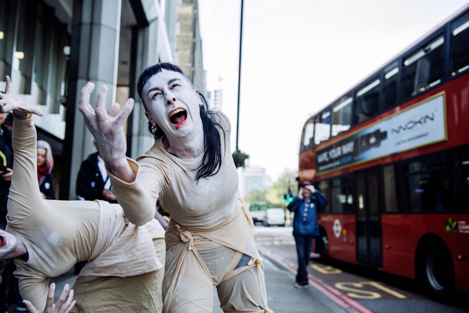 The Siren Troupe, a group of professional dancers and actors took the stage on Tuesday morning at 8 a.m. at the front door of the International Maritime Organization IMO to protest against the devastating destruction of the ecosystems caused by the emissions of the shipping industry. We demand the delegates of the Marine Environment Protection Committee(MEPC) to immediately vote for slowing down the speed of the ships to diminish the catastrophic effects of climate change.