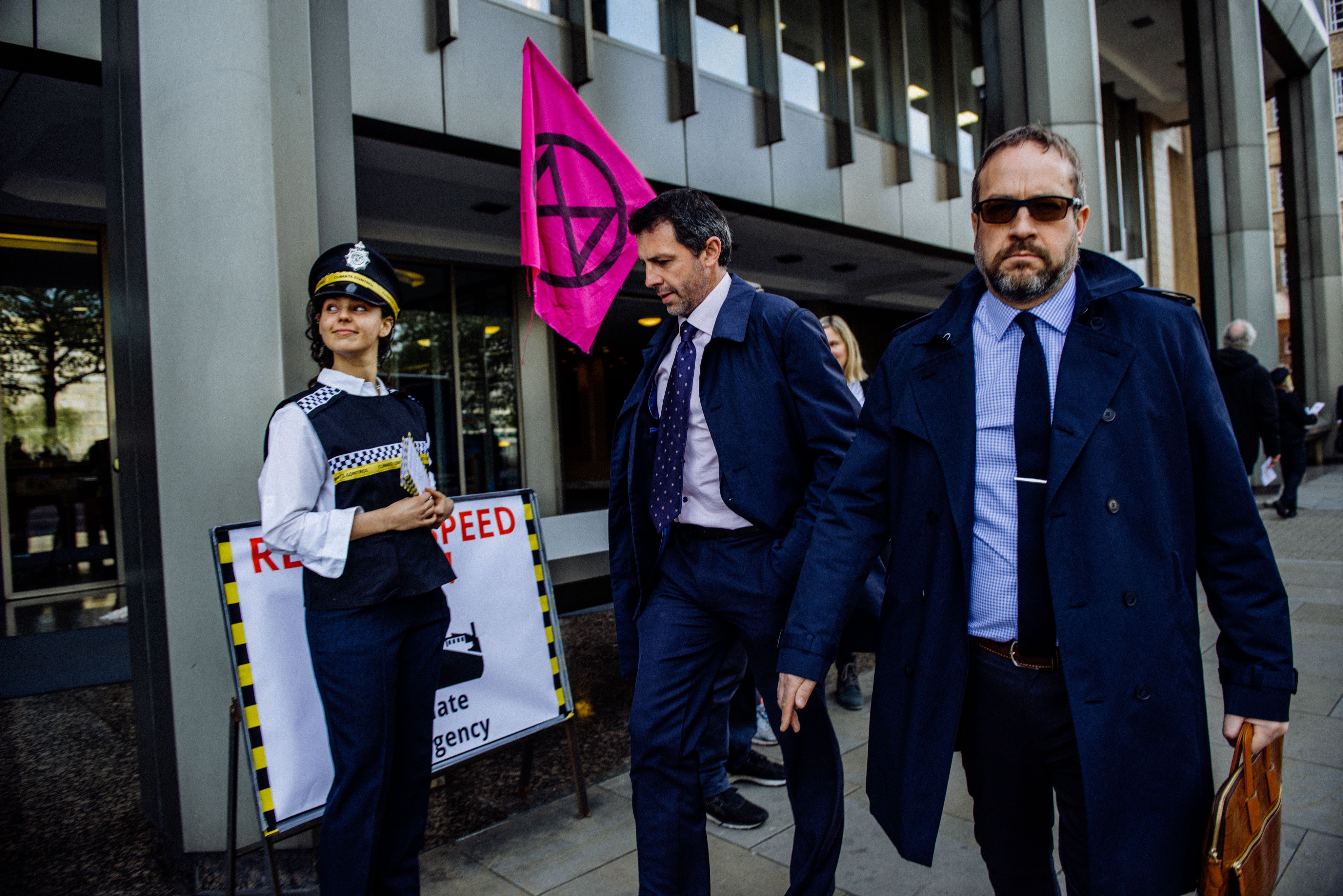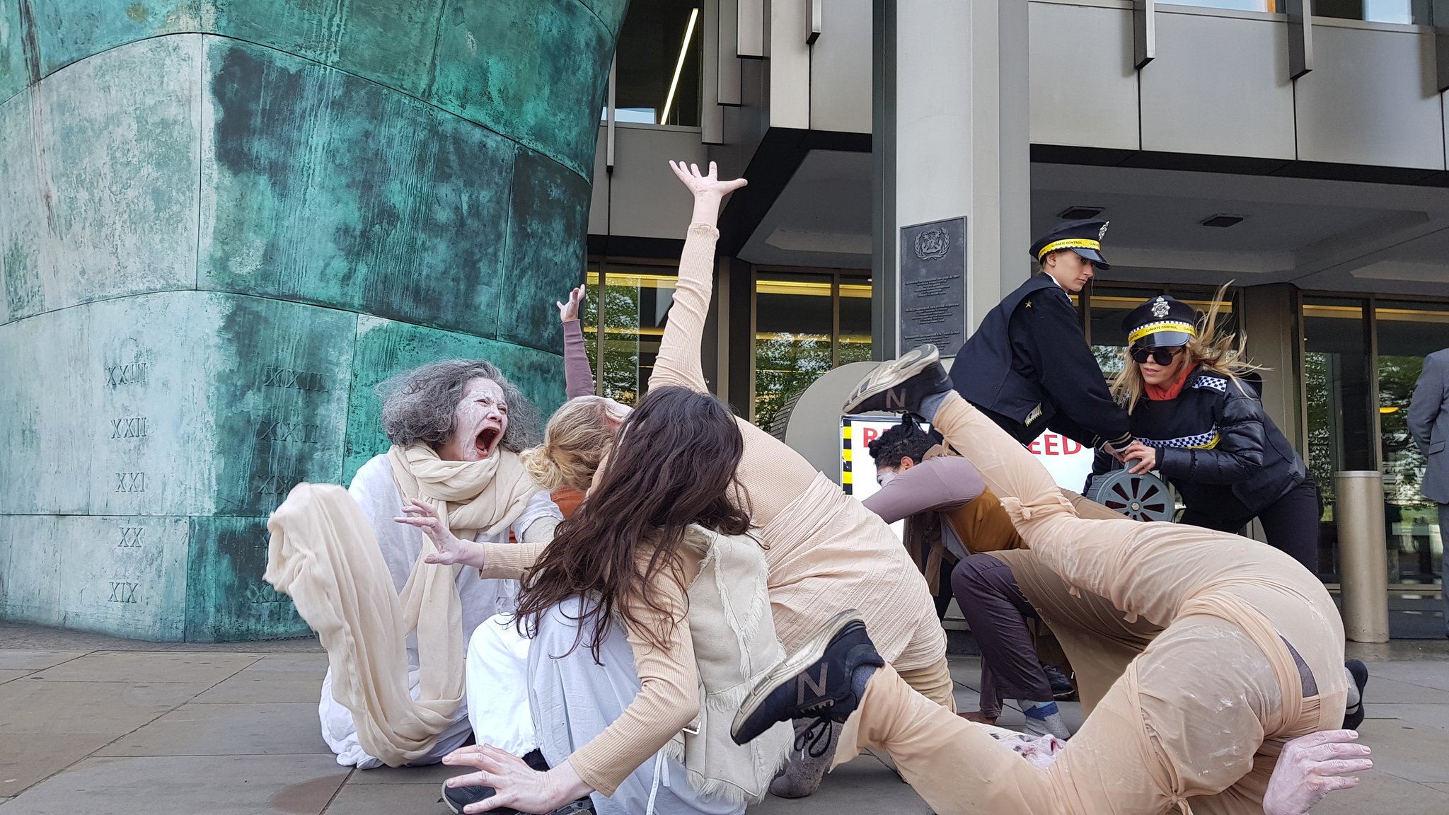 We believe that the the UN-body IMO is open to influence from civil society. In April the IMO held meetings that saw the first regulations take place and putting into place dim minimal reduction. This meeting of the MEPC in London is to discuss its climate obligations and future targets, reassessing the feeble targets put in place last year. Surrounded by a deployed troupe of Climate Control Officers the message was clear. 'We demand the delegates of the Marine Environment Protection Committee(MEPC) to immediately vote for slowing down the speed of the ships, says the artistic director Nicole Caodie, ‘To diminish the catastrophic effects of climate change'.