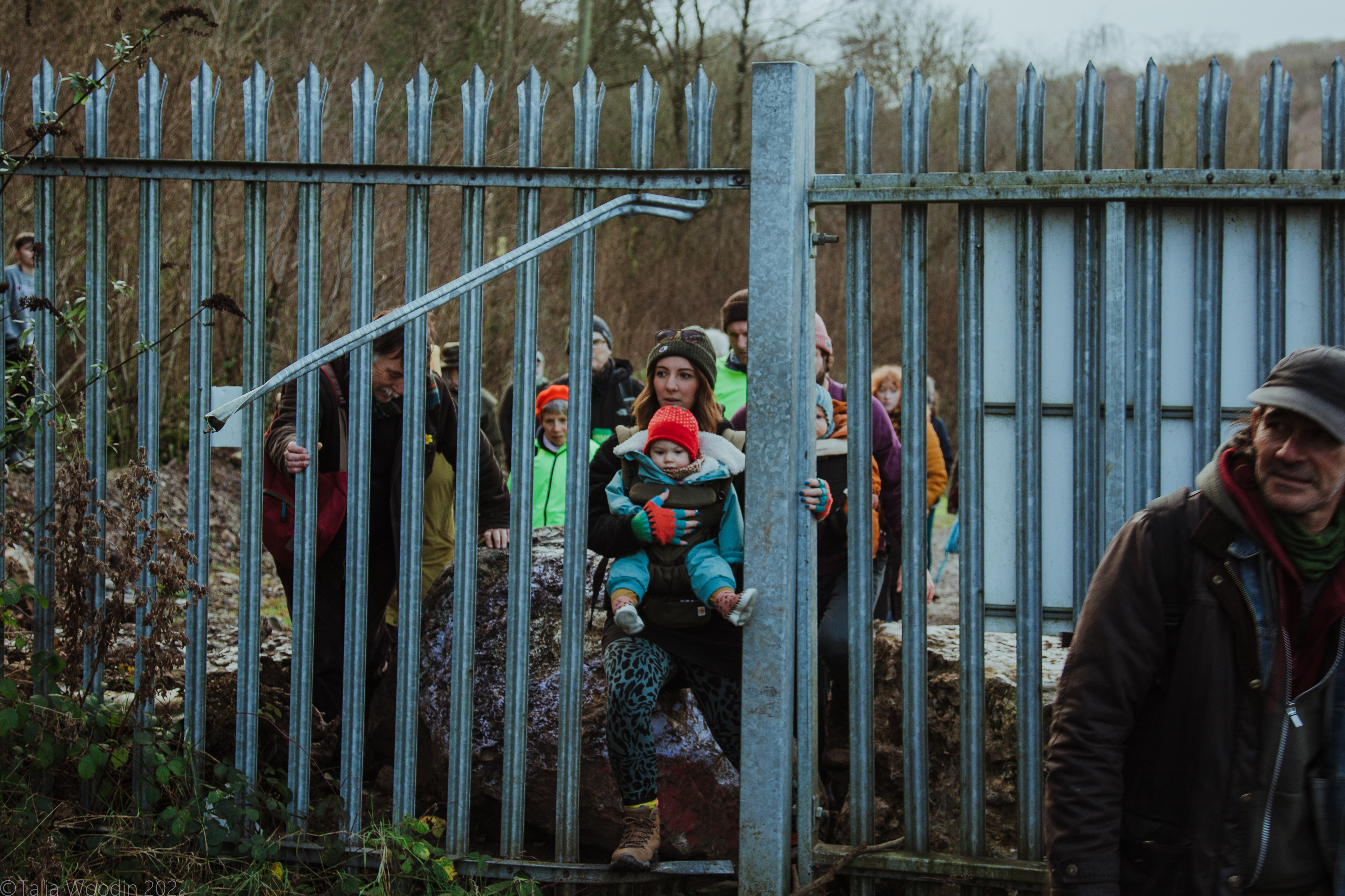 On Sunday, 150 people entered Westdown Quarry near Frome in Somerset and walked the site to protest it proposed reopening and expansion. The weather was crisp, cold and sunny and people's spirits where lively. For many, this was the first time they has walked around the site and the sheer scale of it was surprising. Enormous sheer cliff faces arc around great empty expanses where the stone was previously mined from.