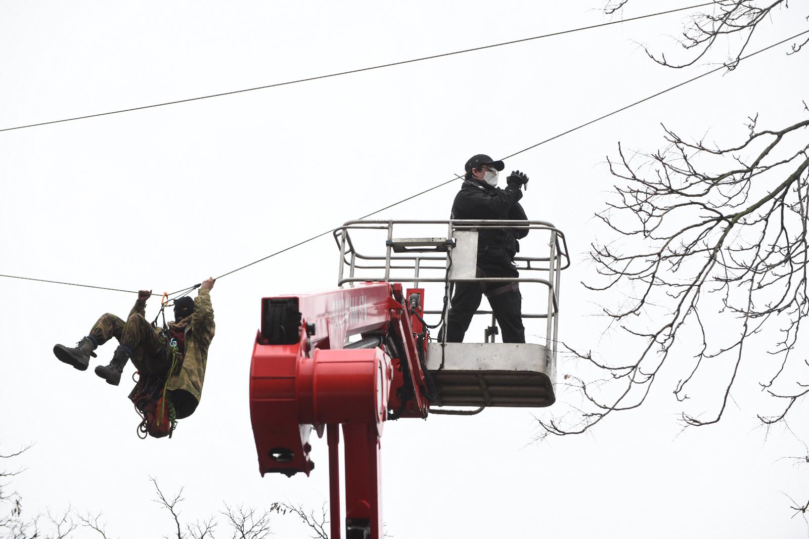 Activists are risking their lives high above the ground - photo credit: Gareth Morris