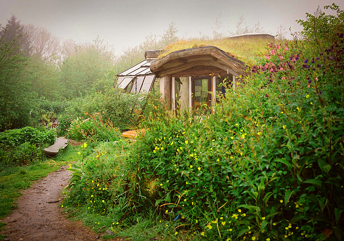 This extraordinary and exemplary eco home (hobbit mansion), surrounding lands and greenhouses are on the market and available to buy now.