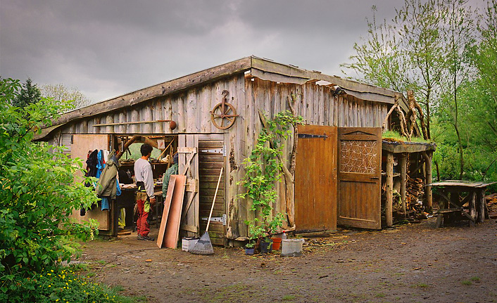 Our dream of restoring natural processes and species also required us to grow food, firewood, make a livelihood and build all the infrastructures to make this possible. This meant creating dwellings from timber, stone and subsoils at the site. Within months of arriving we had built a warm, dry, carbon neutral roundhouse set into the hillside for protection and warmth. Setting up basic services, such as a network to bring spring water to the homes and refurbishing the hydro-electric turbine, took lots of expertise, man hours, finance, sweat and love.